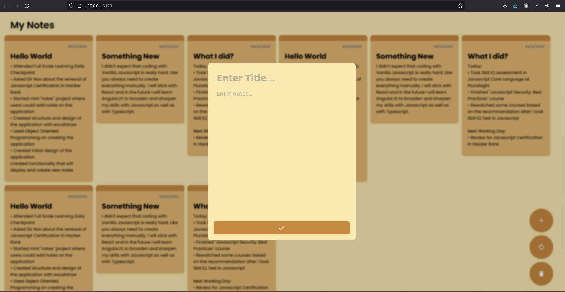 Notes app is a simple project built with Vanilla JavaScript. I used Object Oriented Programming in this application to practice creating interactive UI with plain JS. This application was created to help me practice myself writing Vanilla Javascript code as I'm used to using framework when working with client side applications.